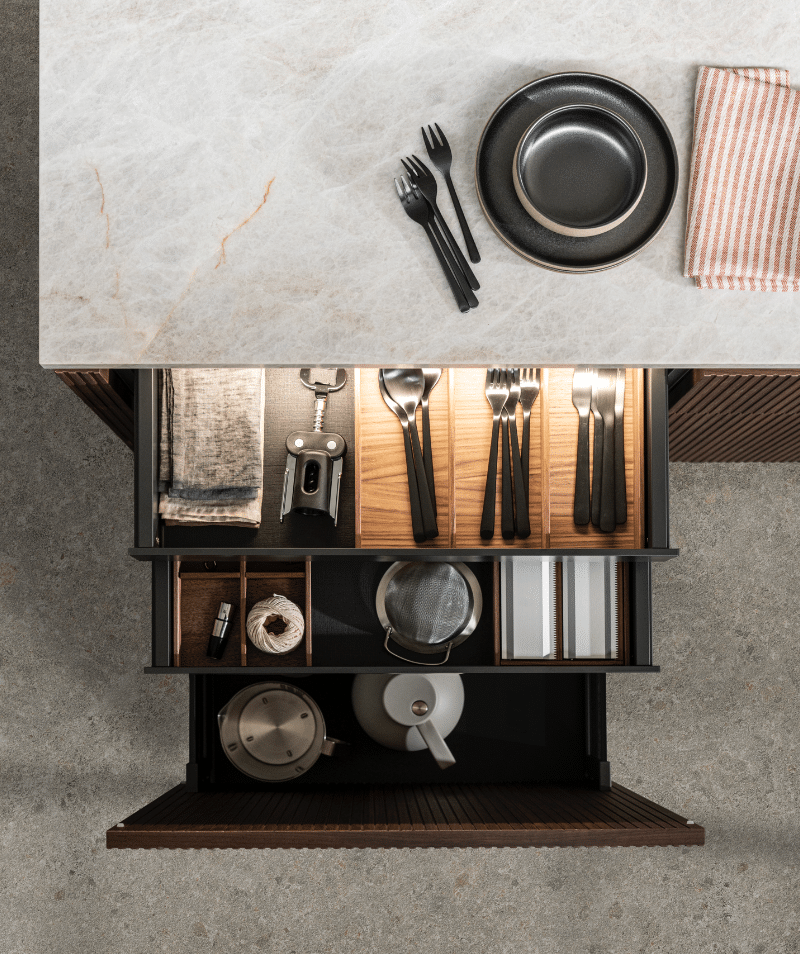 Parce qu’une belle cuisine doit aussi être pratique et fonctionnelle, nous concevons chaque espace de rangement pour répondre à vos habitudes de vie.